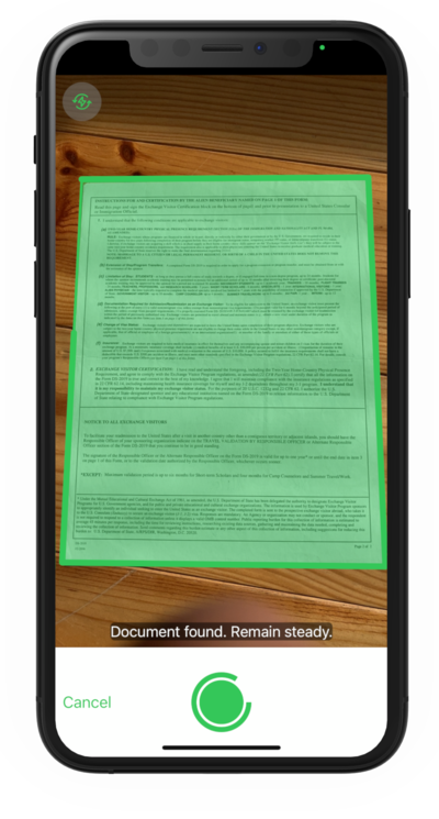 As soon as the user snaps the photo, our various distortion corrections (perspective, curvature) kick in to straighten the document even if they captured the picture with an angle.
